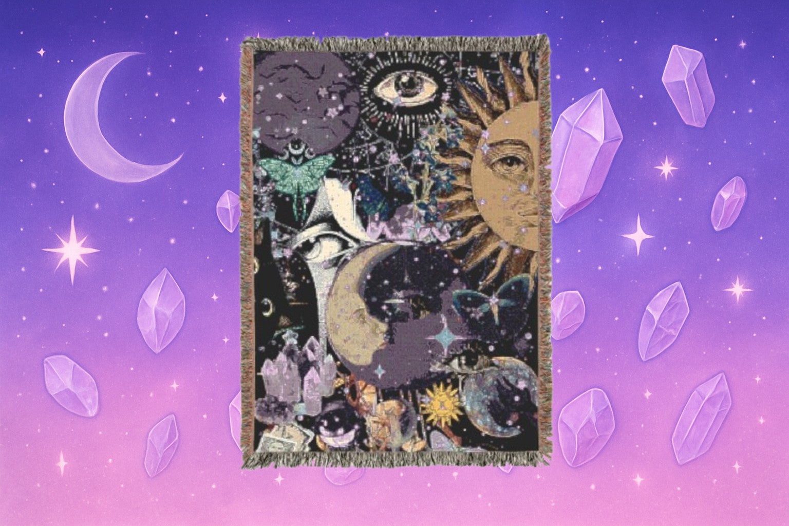 Wrap yourself in positive vibes and sparkle all season long. This Crystal-Inspired Blanket brings soothing energy, cozy comfort, and a touch of magic to any space — perfect for crystal lovers and spiritual girlies alike! 🔮✨